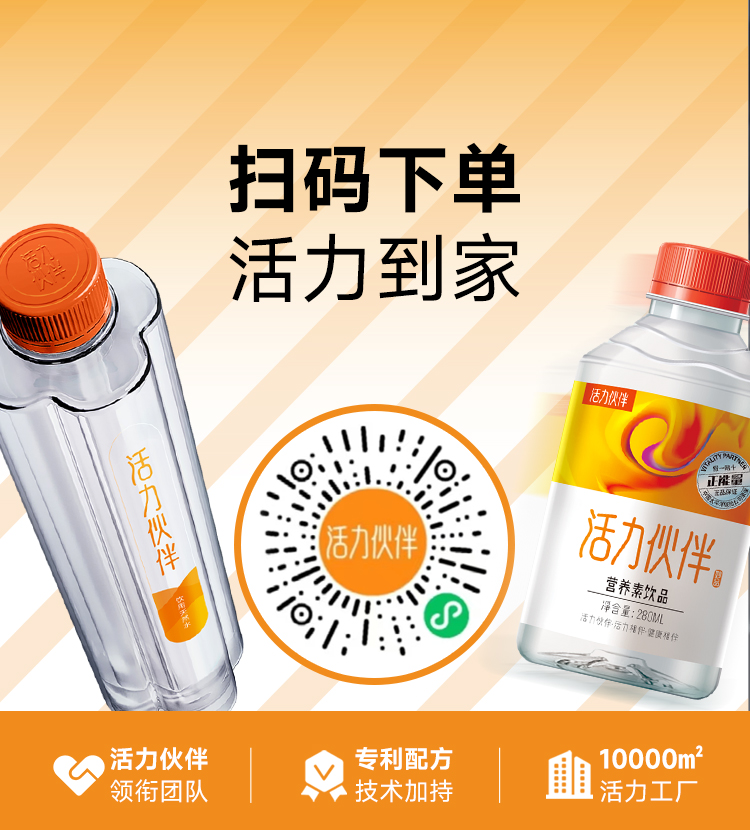 活力伙伴是一家专注于营养饮料及养生食品领域,集产品研发、生产、销售和品牌发展为一体的大型民营企业。活力伙伴勇立健康潮头十余载,产品涉及植物蛋白饮料、天然饮用水饮料,未来将会推出果味饮料、苏打酒及食疗养生健康食品,旗下有“活力伙伴营养素饮料”、“活力伙伴天然饮用水”两个核心品牌。作为中国健康饮料行业的佼佼者,活力伙伴董事长高度重视高质量发展,成立了活力伙伴市场委会作为安全和质量的最高决策机构,为质量发展提供组织保障。同时公司建立了质量和食品安全管理体系,规范了过程质量和食品安全管理。目前,活力伙伴公司掌握多项专利成果,以品质与诚信为本,打造出了一条“护城河”。